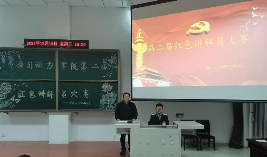 百年征程波澜壮阔,百年初心历久弥坚。中国共产党的百年历史,就是一部践行初心使命的历史,就是一部与人民心连心、同呼吸、共命运的历史。12月14日下午,牵引动力学院党总支举办第二届红色讲解员大赛,本次比赛的评委团由牵引动力学院党总支书记李贞伟,组织委员王燕萍,团总支书记杨若,辅导员赵军、辅导员刘晨丹和辅导员李茜组成,各班学生代表到场观赛。