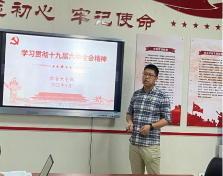 综合党支部书记肖贤以《学习贯彻党的十九届六中全会精神》为题,阐释了十九届六中全会的历史意义、主要内容以及历史贡献。