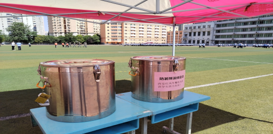 伙食科按时为军训学生、教官们供应足量解暑消渴的绿豆汤,做好防暑降温保障工作,简单却温馨的绿豆汤却让学生及教官们心中暖意满满。