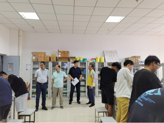 电工教研室老师检查学生焊接作品