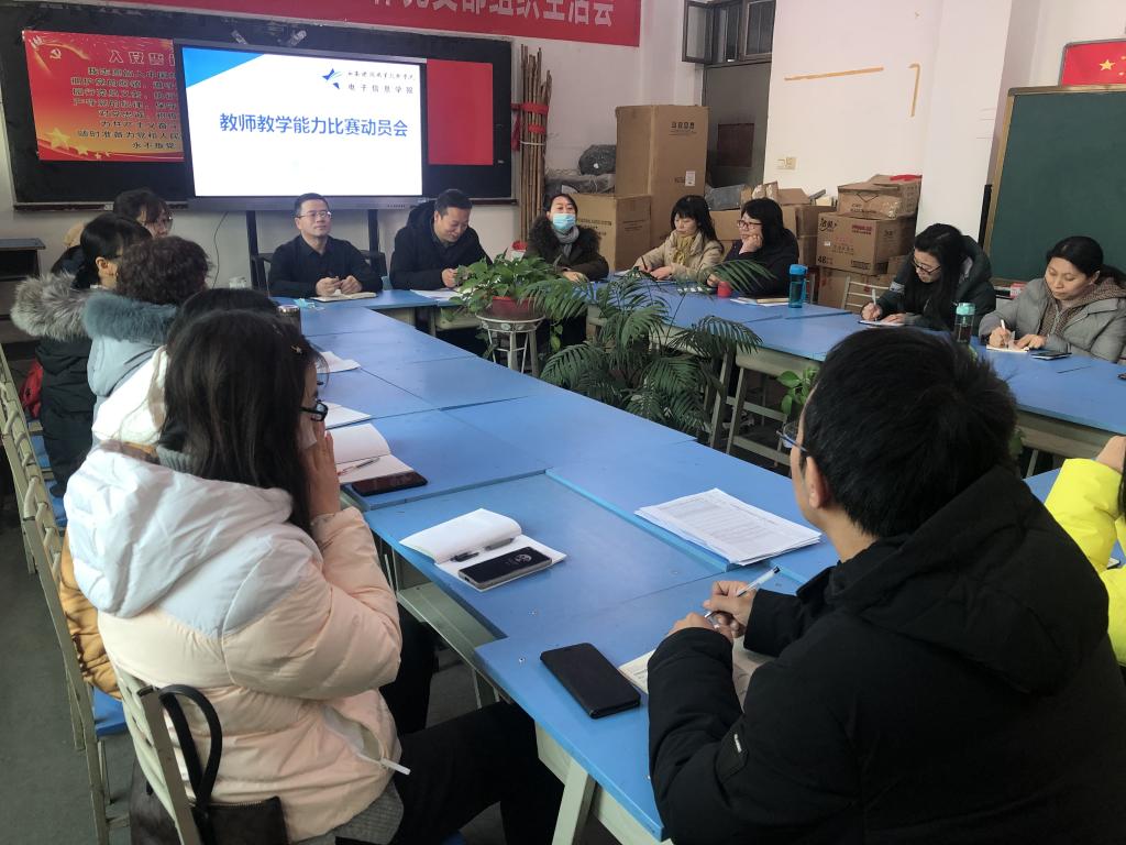 1月8日,电子信息学院召开2021年教师教学能力比赛动员会。院长董奇、党总支书记张伟敏、办公室主任马荣及各教研室主任、专业带头人、各团队全体成员及保障人员参会。