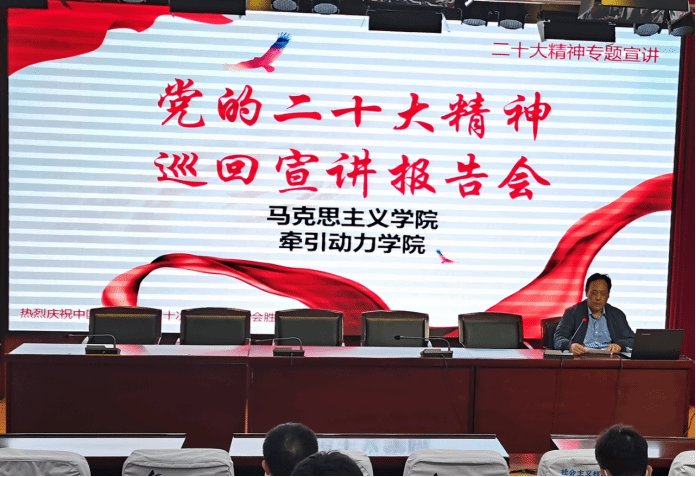 为深入推进必赢官网学习宣传贯彻党的二十大精神走深走实,按照学院党委安排部署,11月9日,学院党的二十大精神巡回宣讲团成员、马克思主义学院教师邢卫红、焦雯、郝占辉在办公楼多功能报告厅为牵引动力学院全体在校师生开展党的二十大精神专题宣讲活动。