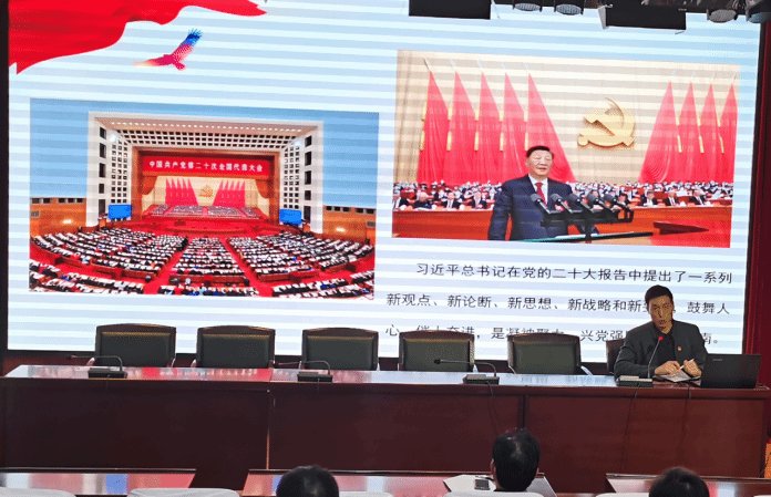 宣讲结束后,党总支书记李贞伟进行总结发言,要求全体教职工和学生在学习宣传贯彻落实党的二十大精神时一定要紧密结合工作、学习、生活整体推进,统筹兼顾,做到双促进双提升。要充分发挥党支部、学生模拟党支部、党建红色讲解员队伍、班团骨干队伍等的作用,通过三会一课、主题党日、班级宣讲等开展学习宣传,支部书记、党员、教师、辅导员班主任要发挥积极作用,带头做好宣讲工作,各班级各年级有序组织、稳步推进,在全体师生中开展二十大精神宣传学习。