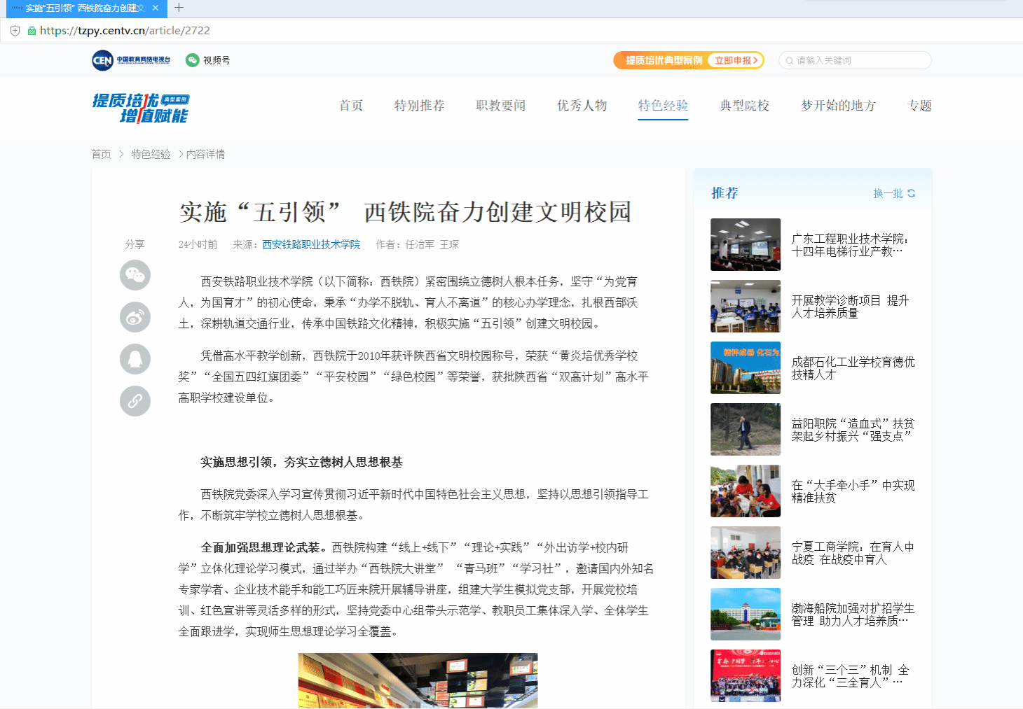 实施“五引领” 西铁院奋力创建文明校园_必赢bwin线路检测中心