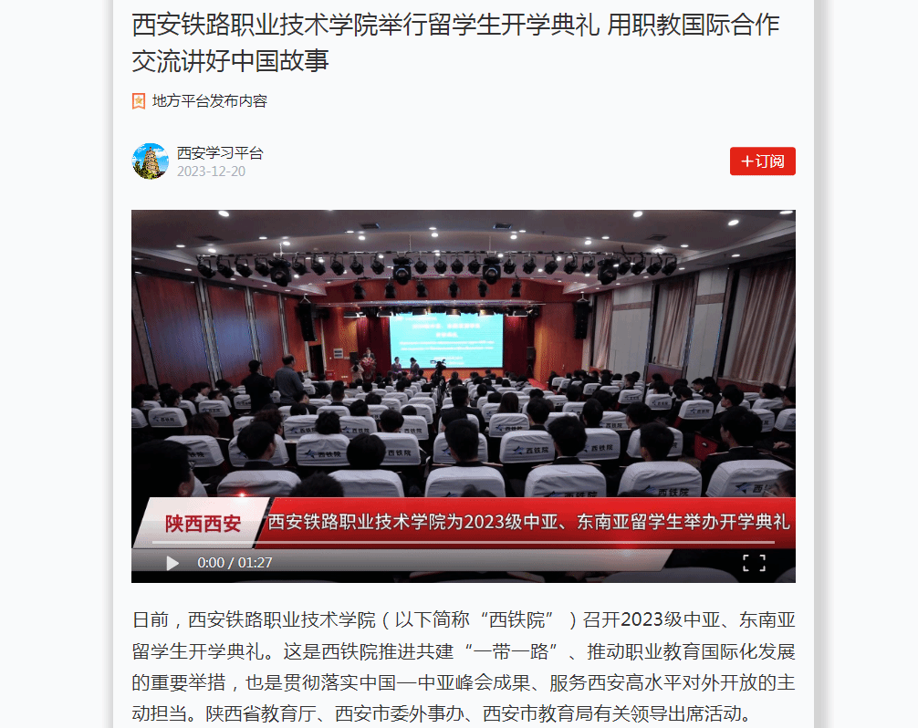 下一条:西安发布:西铁院举行留学生开学典礼 用...