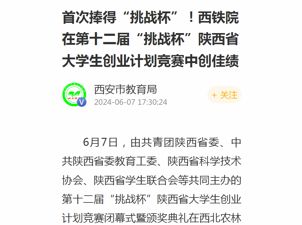 首次捧得“挑战杯”!西铁院在第十二届“挑战杯”陕西省大学生创业计划竞赛中创佳绩