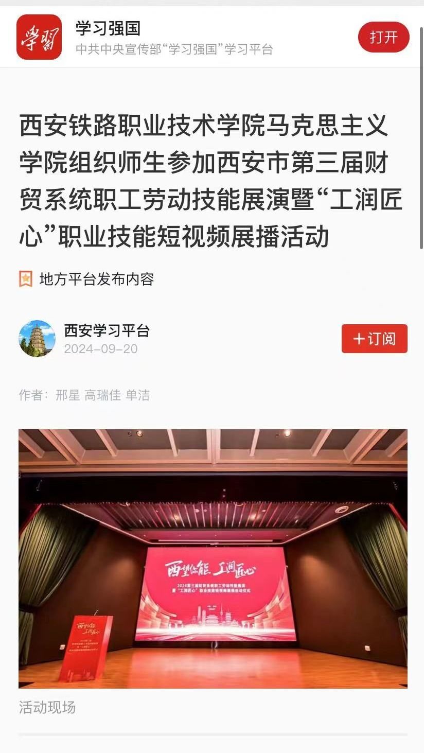 必赢bwin线路检测中心马克思主义学院组织师生参加西安市第三届财贸系统职工劳动技能展演暨“工润匠心”职业技能短视频展播活动