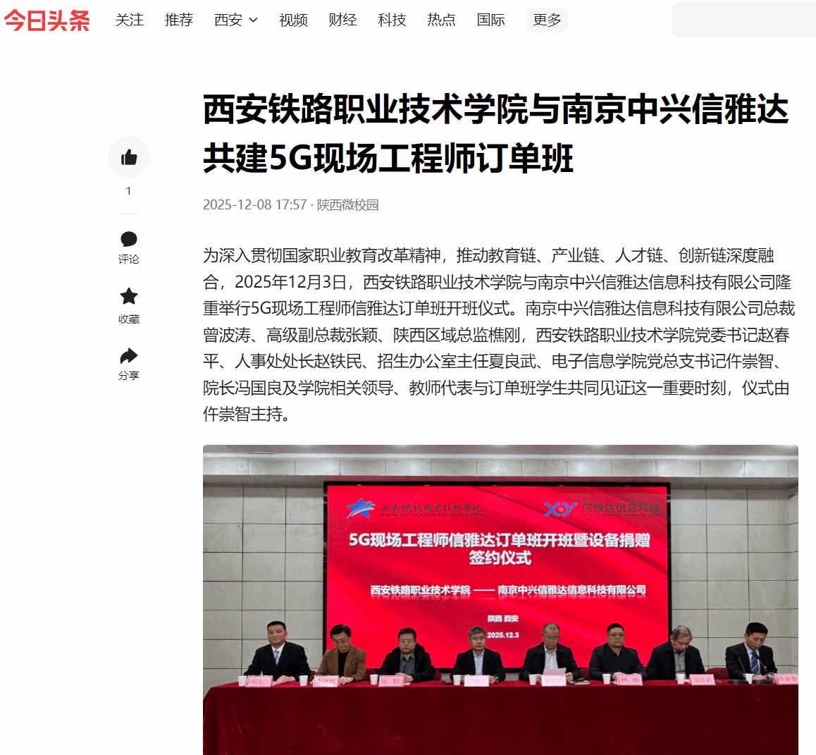 必赢bwin线路检测中心与南京中兴信雅达共建5G现场工程师订单班