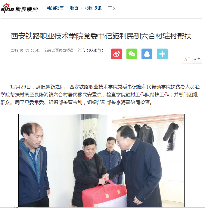 新浪网:必赢bwin线路检测中心党委书记施利民到六合村驻村帮扶