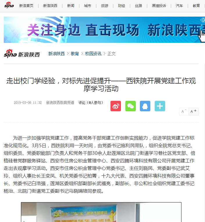 新浪网:走出校门学经验,对标先进促提升——西铁院开展党建工作观摩学习活动