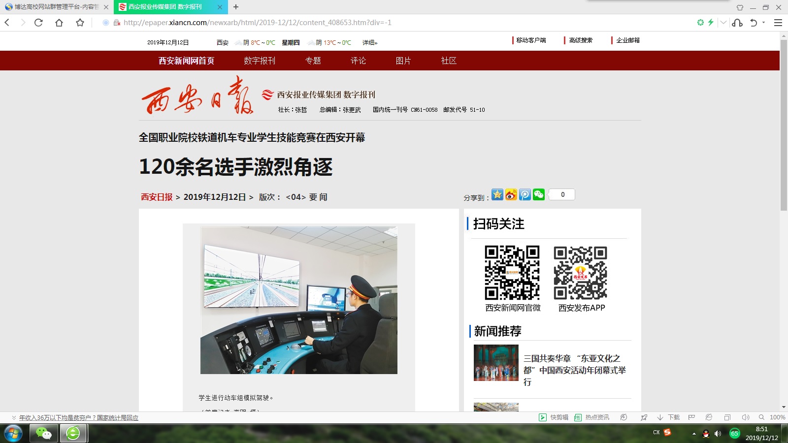西安日报:全国职业院校铁道机车专业学生技能竞赛在西安开幕 120余名选手激烈角逐