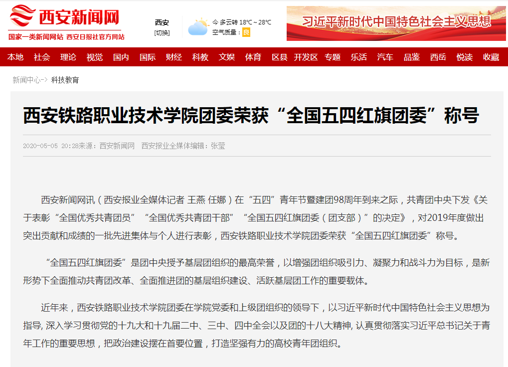 西安新闻网:必赢bwin线路检测中心团委荣获“全国五四红旗团委”称号