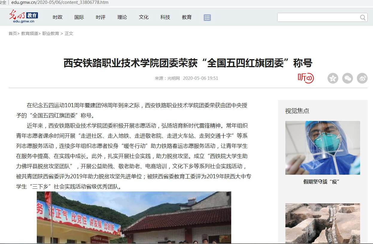 光明网:必赢bwin线路检测中心团委荣获“全国五四红旗团委”称号