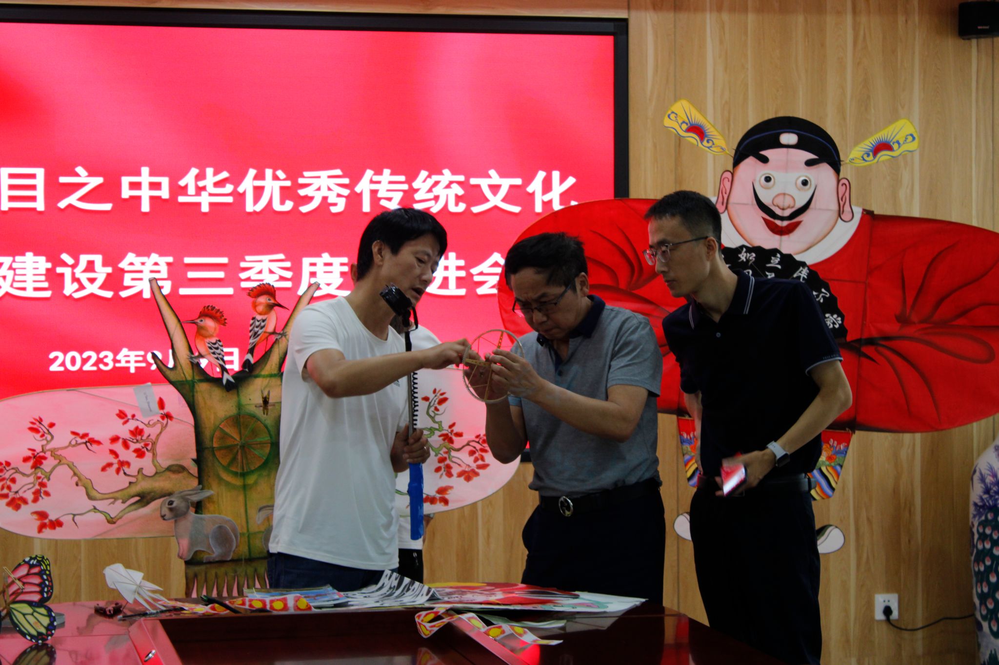 为进一步加强对传统文化的认同感及体验感,进一步推进传承基地建设,在新学期伊始,9月9日上午,中华优秀传统文化传承基地建设第三季度推进会顺利举行,本次推进会邀请张氏风筝制作技艺传承人李涛、基础部主任孙明魁和学前教育专业师生代表共同参与。