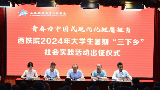 仪式在中国共产主义青年团团歌中拉开序幕。李栋、王琛、田辰分别宣读了《西铁院关于开展2024年学生暑期“三下乡”社会实践活动的通知》《西铁院2024年暑期社会实践重点团队名单》《西铁院2024年暑期“三下乡”社会实践活动纪律安全细则》。