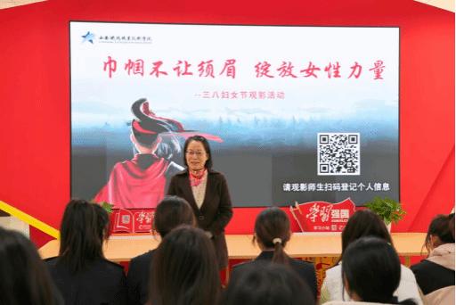 观影开始前,图书馆负责人马建萍致辞,首先向全校的女性教职工及学生致以节日的问候和祝福,她谈到,在这个特殊日子展演《花木兰》,她代父从军、保家卫国的行为,既是对女性力量的致敬,也是对性别平等和文化传承的呼吁,体现了中国传统文化忠孝节义的核心价值观,颂扬了女性的力量和智慧,传递了深厚的家国情怀。同时,也激励者女性师生勇敢追求梦想,突破社会束缚,自信面对挑战,追求自我价值。