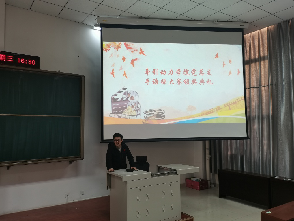 近日,牵引动力学院党总支在牵引一楼阶梯教室举办微电影征集大赛和手指操比赛颁奖典礼。牵引动力学院学工办主任陈广勇,辅导员赵军,专职班主任李茜及受表彰的学生70余人参加颁奖典礼,典礼由辅导员李博主持。