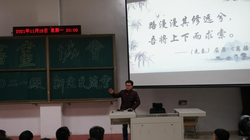 11月15日,必赢官网翰墨轩书画协会在牵引动力学院党总支的组织下在105教室举办书画交流会,组织讲座活动的指导教师有康红霞、周文博,参加活动的有牵引动力学院学工办主任陈广勇,书画协会会员,全校书画爱好者和各班学生代表。