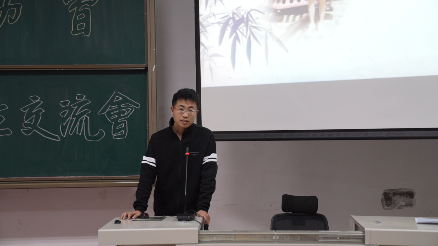 周文博向大家讲述了自己对书法的见解和认识,分别从书法的技法、书法的构成、中国书法的道、书法工具四个方面与同学们分享了自己的经验。最后以屈原的“路漫漫其修远兮,吾将上下而求索”来鼓励同学们在书法的学习道路中要保有“持之以恒,坚持不懈”的决心与态度。同时,周文博分享了自身学习的经历,向同学们讲述了书法这一特长在自己求学求职过程中的重要作用以及对人生的启迪。