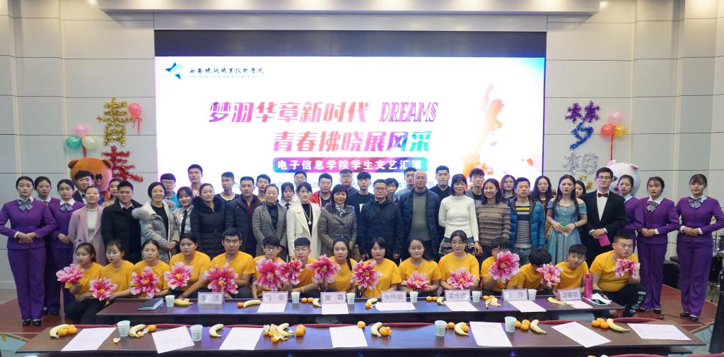 为丰富校园文化生活,增强学生的美育教育,提高学生的综合素质,为大学生提供展现自我的舞台,电子信息学院与基础部语文(公共艺术)教研室于12月6日联合举办了“梦羽华章新时代,青春拂晓展风采”学生文艺汇演。电子信息学院党总支书记张伟敏,语文(公共艺术)教研室副主任潘馨培,教研室教师李萍及自强校区相关科室、学工办全体辅导员、班主任、团学干部、2018级各班代表共计300余人参加了本次活动。
