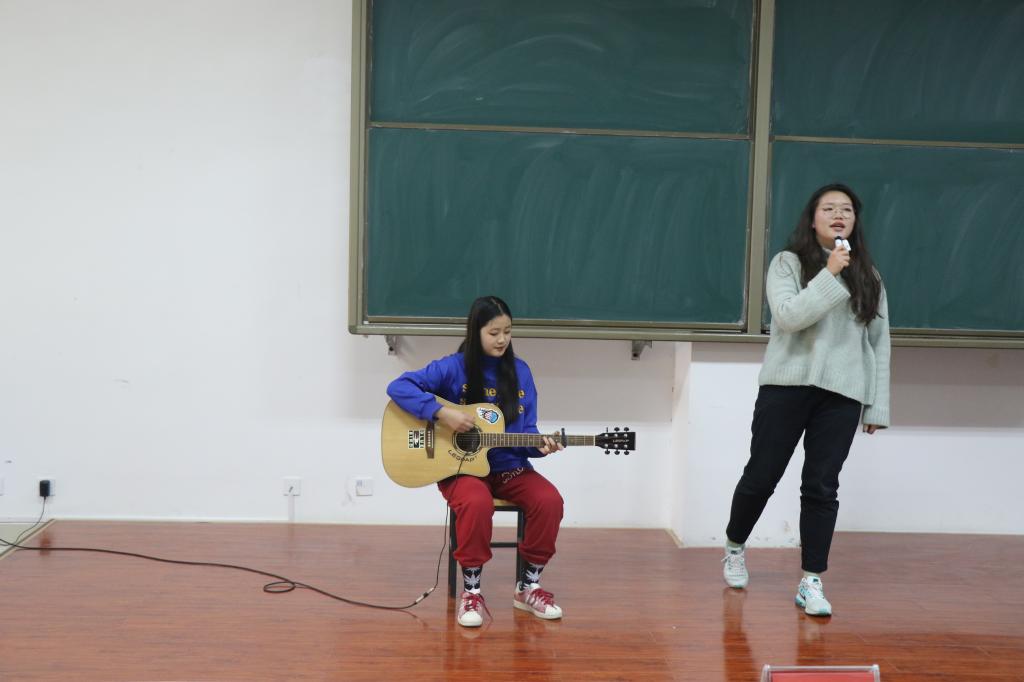 表彰大会结束后,“说学风、求真知、立长志”主题演讲比赛在师生的热烈掌声中正式开始,各年级辅导员老师担任本次比赛的评委,七名参赛选手在比赛中结合自身事例声情并茂地讲述了自己对“说学风、求真知、立长志”这一主题的理解与看法,让现场观众感受到了演讲的魅力与风采。评委老师也秉承着公正客观的原则,对选手进行了认真地评判。在所有选手演讲完毕后,助兴节目吉他弹唱、朗诵及师生互动游戏等环节,进一步将现场氛围推向高潮。