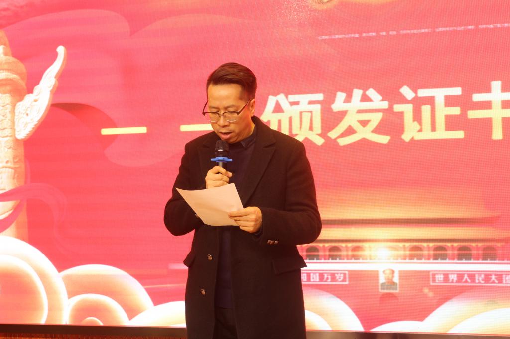 接下来,邢卫红宣读优秀学员名单,景延鹏、赵建英为优秀学员颁发荣誉证书,既肯定了学员们一年的辛苦学习也为新学员树立了榜样。“新时代学习社”全体指导教师为新老社员颁发了学员证书,希望新社员能继承学习社的优良传统,老社员能不忘初心,砥砺前行。国际交通学院铁道供电H1702班张勇杰作为优秀学员代表发言,他表示在学习社这一年不仅开拓了眼界,收获了知识,更明白作为新时代铁路事业的建设者,更要勇敢面对新机遇和新挑战,以一个共产党员的标准严格要求自己,坚定理想信念,刻苦学习,向大国工匠看齐,为中国未来的铁路事业奉献自己的一份力量。