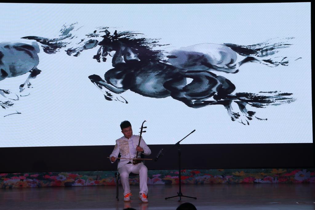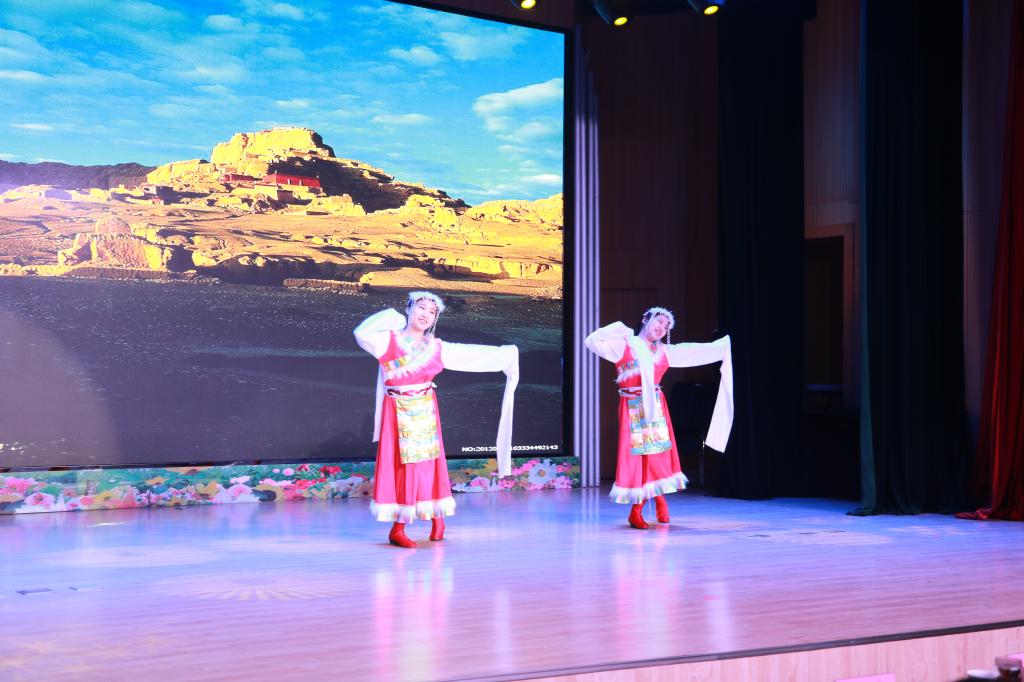 由李豪帅、张园园、关如意、刘恒嘉四位同学组成的主持人团队依次亮相,乐器演奏加演唱《青花瓷》拉开了本次元旦晚会的帷幕,慷慨激昂的二胡演奏《战马奔腾》、学生原创诗歌中俄文朗诵的《新年》、纯正嗓音唱奏《光辉岁月》、民族舞蹈《我要去西藏》、创意相声《专业那点事儿》等16个节目的精彩表演亮点十足,为晚会增添了十足的光彩。