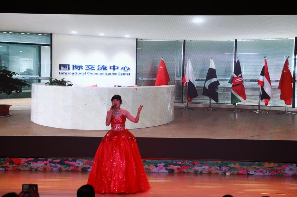 由国际交通学院5名外教老师带来的俄语歌曲《叫上我一路同往》极具异国特色,受到感染的学生们自发上台献花,体现了师生之间的深厚情谊。王汝云老师带来的歌曲《跟你走》,更是将晚会推向了高潮,她深情款款的美声表演引来了无数同学的欢呼尖叫,赢得了全场的阵阵掌声。