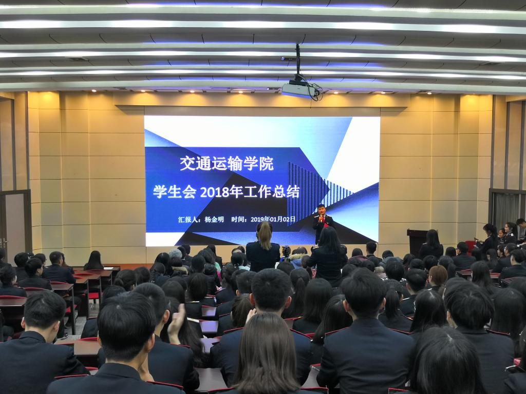 为了科学构建各学生组织体系,进一步加强学生干部队伍建设,交通运输学院于1月2日在自强校区召开学生干部年度总结大会。交通运输学院党总支书记仵崇智,学工办主任孟永辉,全体辅导员班主任老师,260余名学生干部参加大会,大会由该院学生会副主席马馨语主持。