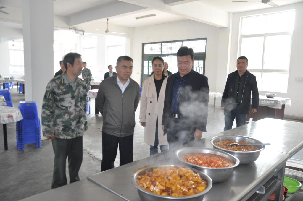 随后,黄家昌详细听取了驻地负责人、学院党委学生工作部副部长高阿联的工作汇报,他就开训以来的训练情况、活动开展情况、连队建设、病号管理、宣传报道、内务整理等工作进行汇报。黄家昌对此次军训已经取得的阶段性成果给予了充分肯定,并对接下来的军训组织工作提出了三点希望:一是要向解放军学习“带兵”的经验,通过这次军训学习带好一个班集体,使其具有强大的凝聚力;二是要向解放军学习“精气神”,通过这次军训的历练,让班集体保持一种蓬勃向上的精神面貌;三是要珍惜军训生活,以更高的标准完成好后期的训练工作。基地领导也高度评价了必赢官网严谨求实、扎实细致的军训团工作,以及参训学生精神饱满的训练状态,表示将继续科学施训、严格管理,圆满完成后续军训任务。接着,黄家昌一行深入到学生宿舍、食堂等地进行了走访,检查了学生的内务整理情况,了解了师生的饮食和医疗保障情况,看望了病号连的学生,并与部分学生进行了交谈,对各二级学院在紧张的军训期间,创办的一幅幅精美展板表示了赞赏和鼓励。