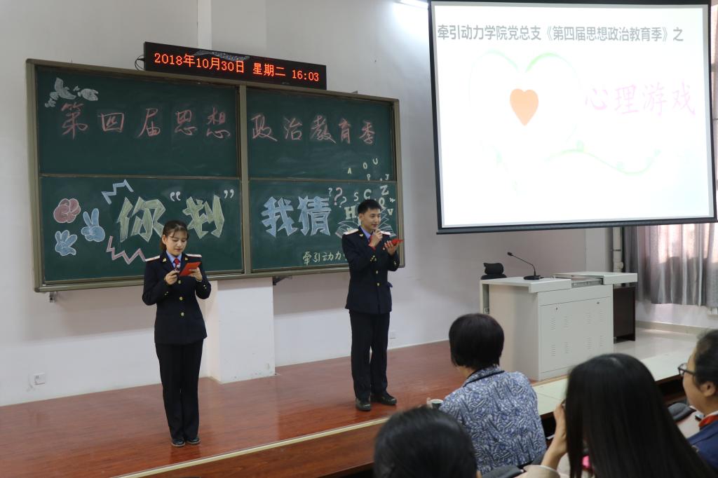 10月30日,牵引动力学院党总支举办“第四届思想政治教育季之心理健康游戏”活动。牵引动力学院党总支书记和晋秦、学工办主任王智敏,专任教师代表、辅导员、班主任以及学生代表等共200余人参加本次活动。