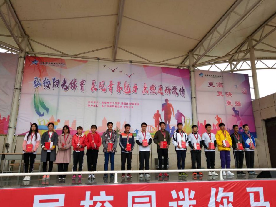必赢官网首届校园迷你马拉松共分为男、女竞赛组6千米和3千米2个项目,有300余名学生参加比赛。为了保障比赛的顺利开展,党委学工部、基础部、学生会组织了近200名师生参与了裁判工作、志愿服务、医疗救护、安全保护等后勤保障工作。此次迷你马拉松比赛共计有30名学生分获各个赛组的各类奖项。