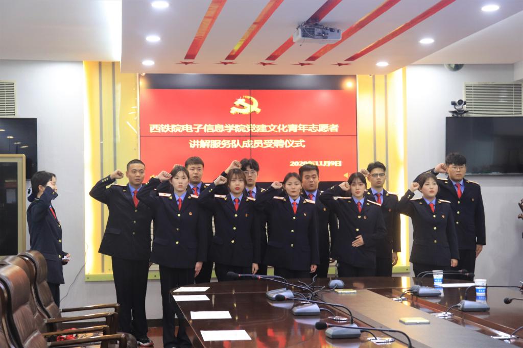 今年九月,必赢官网自强校区党建文化长廊和师生政治生活馆建成使用,为更好的用好用活这一红色教育阵地,服务于广大师生思想政治教育和党性文化教育,电子信息学院成立了首批党建文化青年志愿者讲解服务队并与11月9日在自强校区师生政治生活馆举办服务队成员受聘仪式,党总支委员、各支部书记和组织员出席本次仪式。仪式由电子信息学院组织员李璇主持。