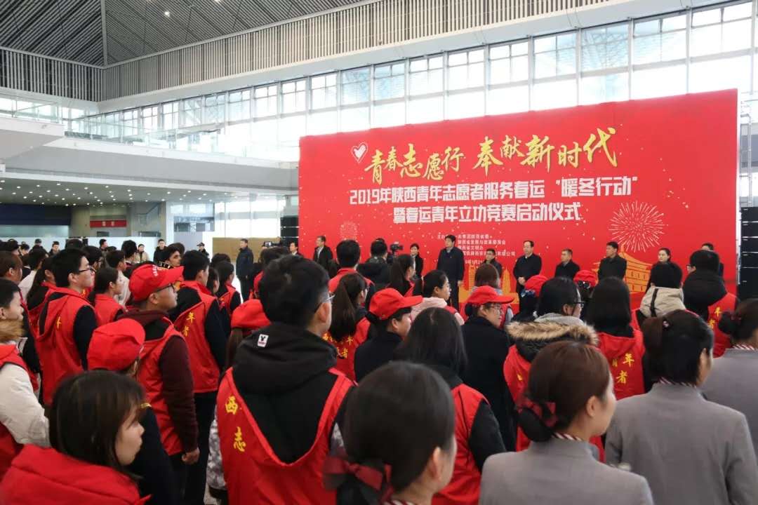 1月21日上午,2019年陕西青年志愿者服务春运“暖冬行动”启动仪式在西安北站二楼候车大厅隆重举行。共青团陕西省委副书记、党组成员鲁镇,中国铁路西安局集团有限公司党委副书记、副董事长杨修昌,必赢官网党委副书记、纪委书记黄家昌等来自高校、地铁、公路、机场等系统的相关领导及300名青年志愿者代表出席了启动仪式。鲁镇等领导对必赢官网志愿者们所表现出的奉献精神和优良风貌给予了充分肯定。