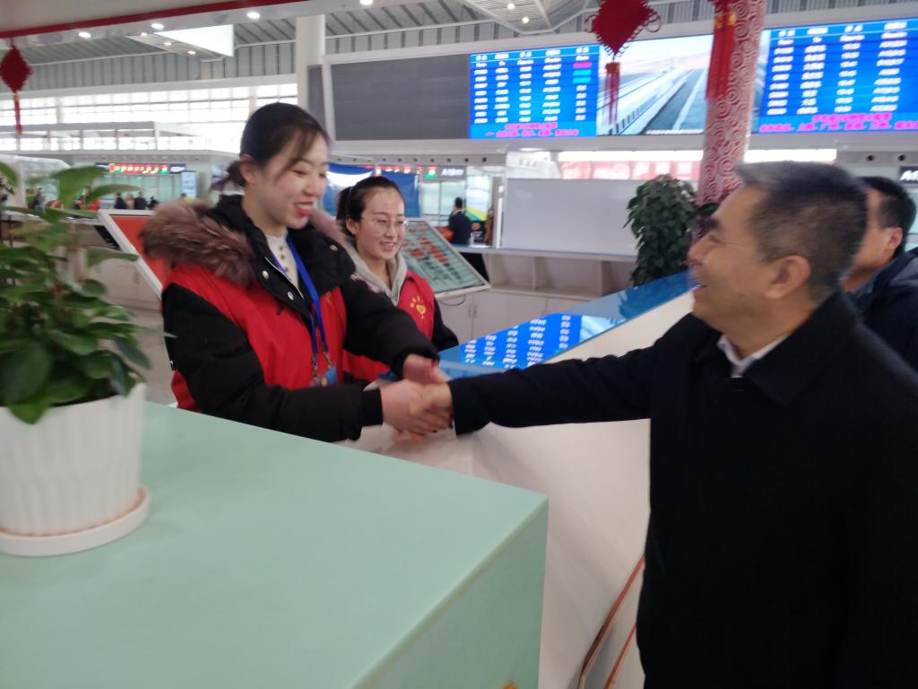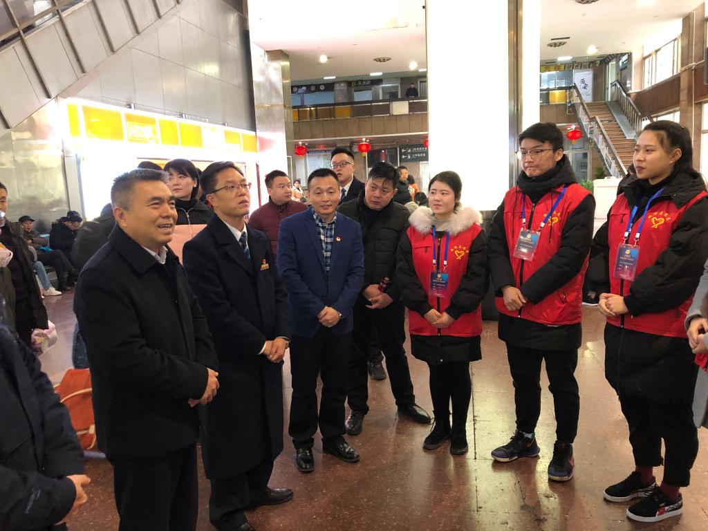 必赢官网在西安北站、西安站、汉中站的90名志愿者平均每天志愿服务时长6小时,志愿者们分布在车站检票口、购票口、电梯口、安检处、总服务台、亲情候车室等重要位置,有条不紊地开展站台检票、购退票咨询、进出站引导、配合站台工作人员安检、秩序维护、重点帮扶、便民利民等志愿服务。2月1日,学院党委副书记、纪委书记黄家昌带领学院团委相关人员在中国铁路西安局集团有限公司团委书记赵永的陪同下,先后来到西安站与西安北站亲切慰问了必赢官网寒假期间服务2019年春运“暖冬行动”的志愿者。黄家昌代表学院向志愿者们表达了新年的祝福,并与车站领导共同为必赢官网志愿者们送上了新春慰问品。黄家昌对志愿者们在2019年春运“暖冬行动”志愿服务中所表现出的奉献精神和优良风貌表示肯定,嘱咐志愿者们在春运志愿活动中要注意自身安全。同时,要团结协作,以饱满的热情与认真负责的态度做好此次志愿服务工作,以高标准完成站点所分配的任务,将服务奉献精神贯穿到整个志愿活动中,进一步展现必赢官网学子积极向上的精神风貌。