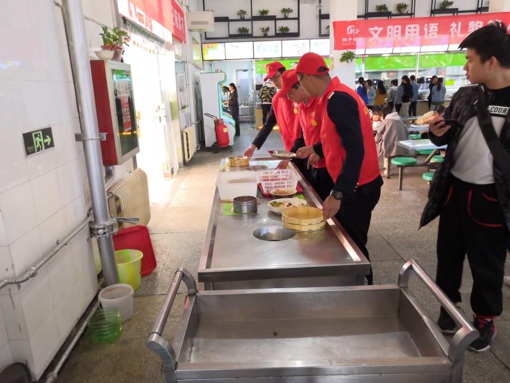 活动开始后,志愿者排队来到食堂,主动帮助师傅们清理餐具,积极回收餐桌上遗留的餐具并进行分类, 将餐具摆在手推车上推回厨房进行消毒清理。脏、苦、累他们都不怕,干净的桌面是他们的劳动成果,同学们赞美的眼神是他们努力的回报,志愿者脸上洋溢着满满的自豪感。细微的动作和礼貌的表情,无不体现出西铁学子良好的个人修养和艰苦朴素的作风。志愿者们用行动传承中华民族的优良传统美德。服务的过程中可以磨练坚韧不拔的毅力,培养积极健康的思想状态,牢固树立“以艰苦朴素、勤俭节约为荣、以铺张浪费、奢侈挥霍为耻”的荣耻观。