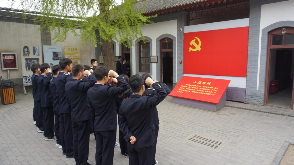 首先, 同学们陆续参观各个展馆,在讲解员细心的讲解中切实感受到革命者革命时代的艰难不易。接下来,由学生干部代表赵宇轩带领全体同学在党旗下庄严的宣誓,铮铮誓言表达着广大青年团员奋进新时代的决心。 最后同学们慷慨激昂地合唱了抗战经典歌曲《黄河大合唱》,用歌声缅怀革命先烈。