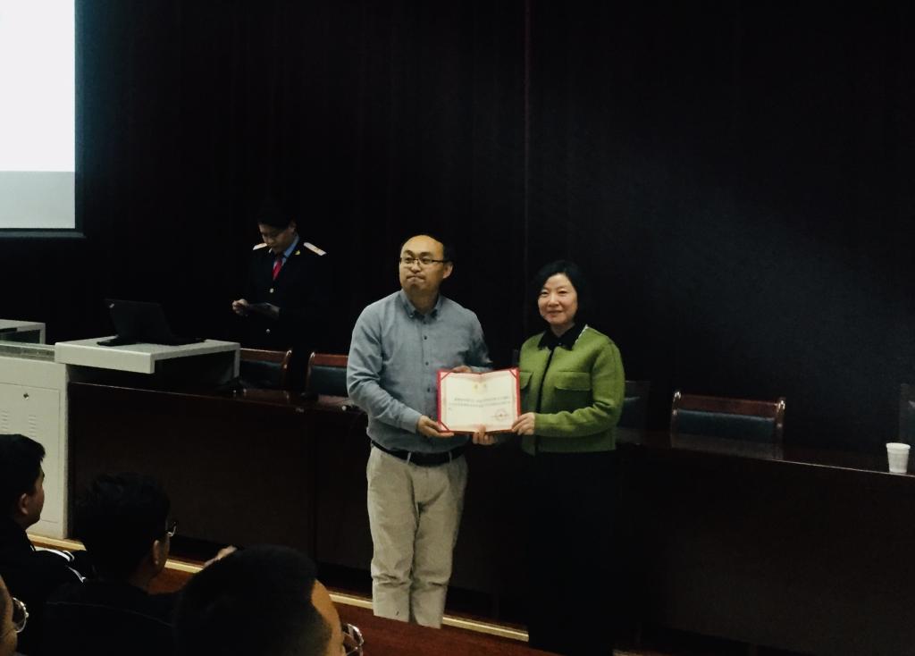 报告结束后,方彦教授代表电气工程学院向刘鹏颁发了创新创业校外指导老师聘书。