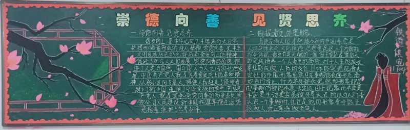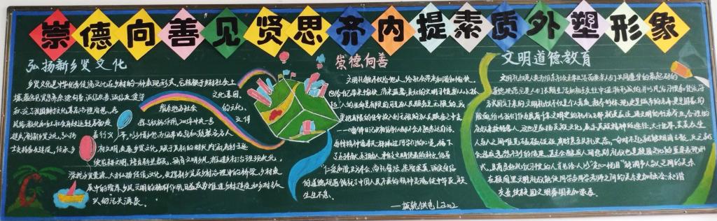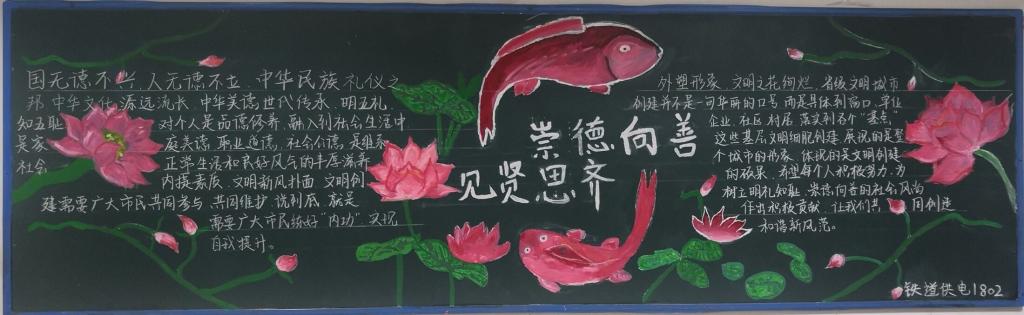 为了丰富学生校园文化生活,广泛宣传“崇德向善  见贤思齐 内提素质 外塑形象”为主题的文明礼貌纪律卫生月系列活动。调动同学们的积极性和创造性,营造良好的校园文化氛围,电气工程学院在3月份,组织了黑板报评比活动。