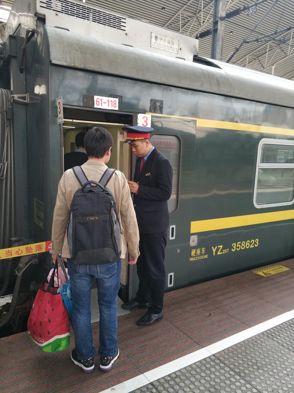 石晨明,来自机电工程学院铁道车辆1604班,自2018年7月开始在中国铁路西安局集团有限公司西安客运段上海车队西沪一组实习,担任列车乘务员。