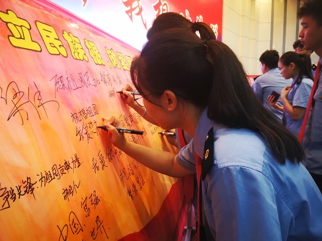 全体学生挥动手中的五星红旗,齐声高唱《歌唱祖国》,展现出必赢官网学子蓬勃的青春朝气和浓浓的爱国情怀。活动最后,师生纷纷上台,在留言板上写下对祖国的美好祝愿!