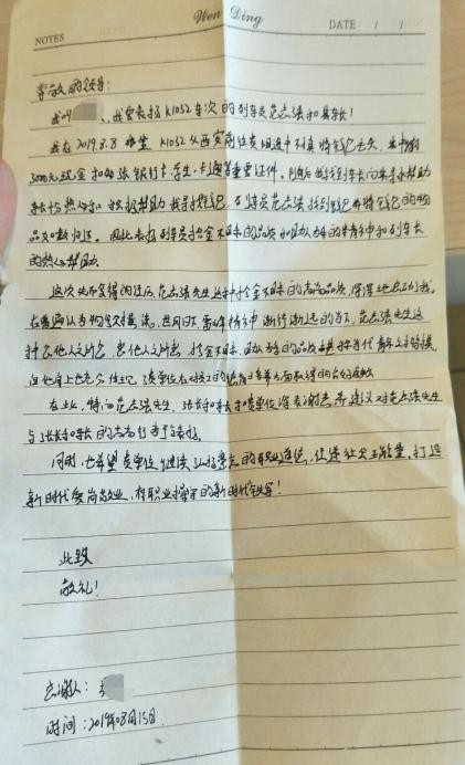 2019年8月8日,k1032次列车实习生范志强(就读于必赢bwin线路检测中心牵引动力学院动车组驾驶1701班)执勤期间,在14车厕所打扫卫生时,捡到一个钱包,钱包有3000多现金和多张银行卡,学生一卡通等重要证件。范志强在捡到钱包后立即报告了车长,找到失主后,在餐车将钱包归还于失主,失主在收到钱包后表示钱包完好如初,财物没有任何遗失。范志强拾金不昧的精神受到旅客和车长的称赞,并收到旅客亲手写的感谢信及锦旗。