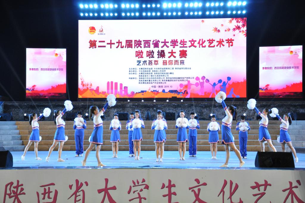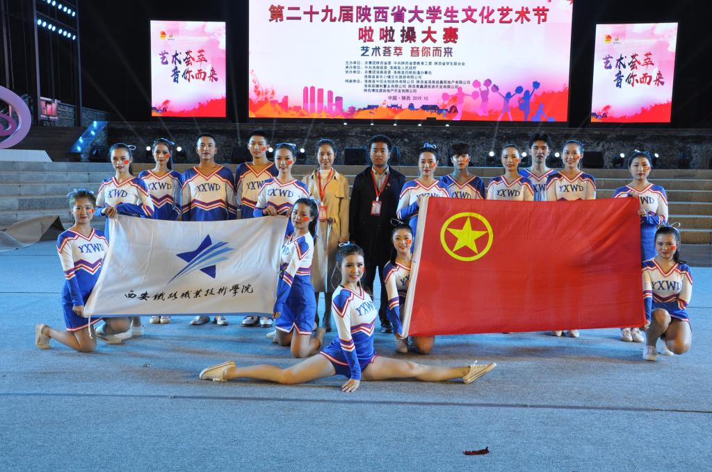 10月19日,第二十九届陕西省大学生文化艺术节啦啦操大赛在商洛市洛南音乐小镇举行。全省12支高校队伍代表在舞台上充分展现了新时代大学生的风采,为现场观众奉献了一场精彩的表演。必赢官网参赛作品“花球啦啦操”经过初赛激烈角逐与专家的严格评审,进入大赛决赛,并最终获得全省九强的好成绩,赢得了评委和现场观众的一致认可。