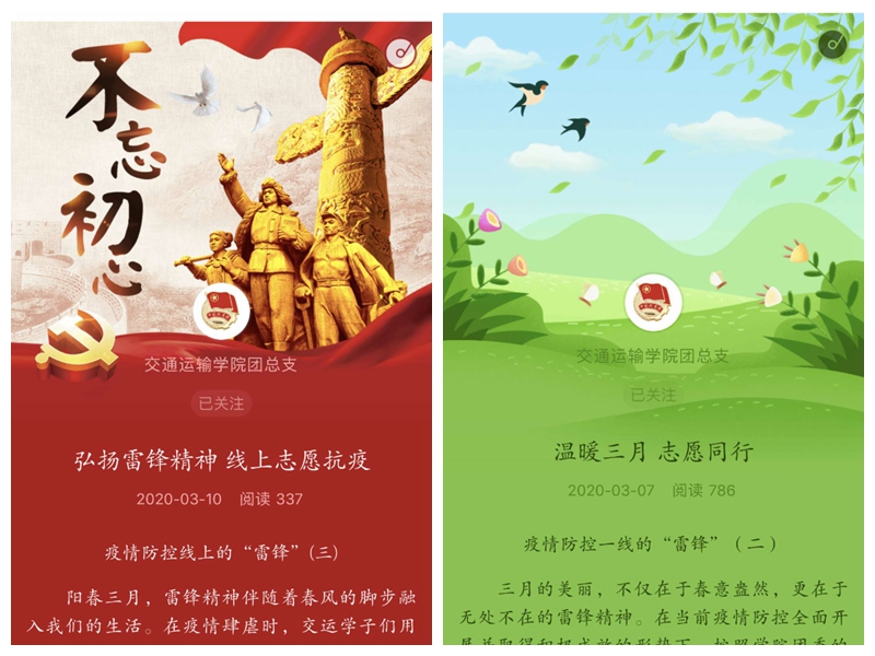 每年的三月,我们总是会想起雷锋,因为雷锋,三月有了独特的意义,也有了一个新名称——“雷锋月”。爱心暖三月,雷锋精神永传承。在全国人民抗击新冠肺炎疫情的特殊时期,我院青年志愿者以多种形式开展志愿服务活动,践行“雷锋精神”,贡献自己的青春力量。