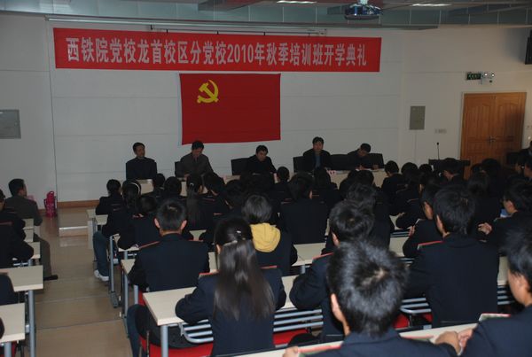 11月30日下午,龙首校区2010年秋季分党校培训班开学典礼在6号楼6层阶梯教室隆重举行。学院党委组织部部长、党校副校长黄家昌同志做了动员报告,校区主任、党总支副书记史艺农宣读了《学员管理及考核办法》,校区副主任李维谦、思政部副主任杨稳利出席了开班典礼。典礼由党总支书记、分党校校长司西平同志主持。