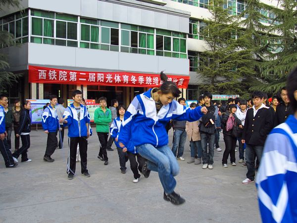 启动仪式上,院团委书记熊奇讲话并宣布第二届阳光体育冬季跳绳、踢踺子比赛开始。来自各系部的12支参赛队伍展开了激烈的角逐。集体大绳如腾龙般走着“s”型,每个队员都跳跃自如,不间断的飞过长绳,赢得了不断的加油呐喊和掌声。踢毽子的同学独秀一支,既踢出活力更踢出个性。每项活动的进行,都迎来了同学的观注,詹天佑广场一片欢呼声。