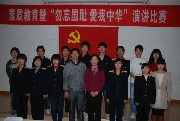 为了贯彻校区关于加强学生素质教育的工作要求和安排,政治教研室根据素质教育的实施方案和国际国内形势,结合思想政治理论课的教学内容,以第二课堂活动为载体,以提升学生综合职业素质为目标。于12月2日下午组织2010级、2009级学生进行以“勿忘国耻,爱我中华”为主题的演讲比赛。