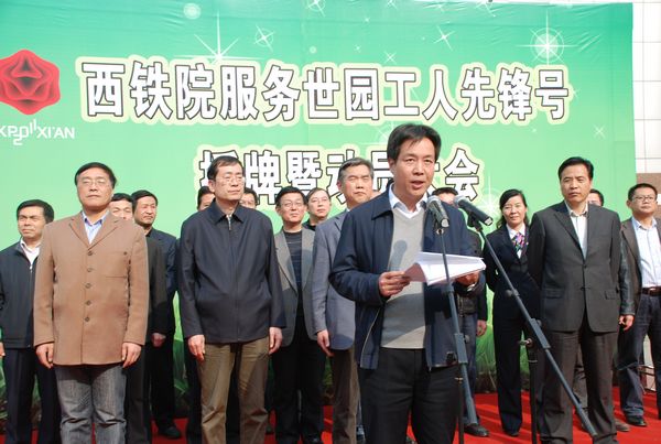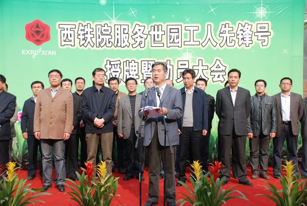 412下午,学院在龙首校区隆重召开了西铁院服务世园“工人先锋号”授牌暨动员大会。学院党委书记何绪生、院长田和平,党委副书记、纪委书记李长才,副院长邓耀斌、翁谦锁,各系部、相关部门负责人及龙首校区千余名师生参加了大会。大会由学院工会副主席刘景玉主持。