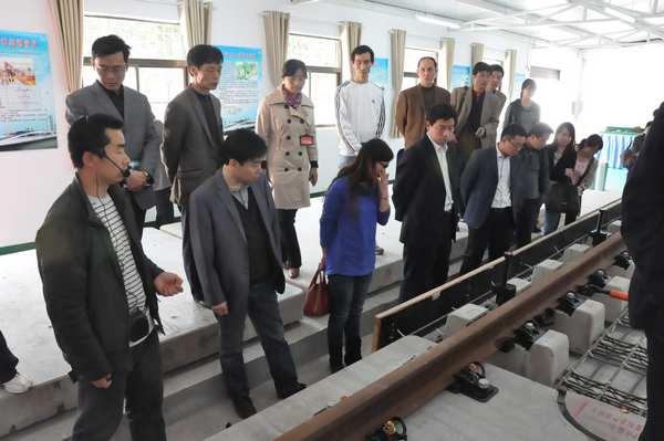 4月5日,陕西铁路工程职业技术学院测绘工程系主任张福荣,铁道工程系主任张碧一行15人来必赢官网临潼校区考察无砟轨道精调与检测实训基地。临潼校区主任熊奇,副主任赵景民、张国邦及相关部门负责人陪同考察并进行了交流。