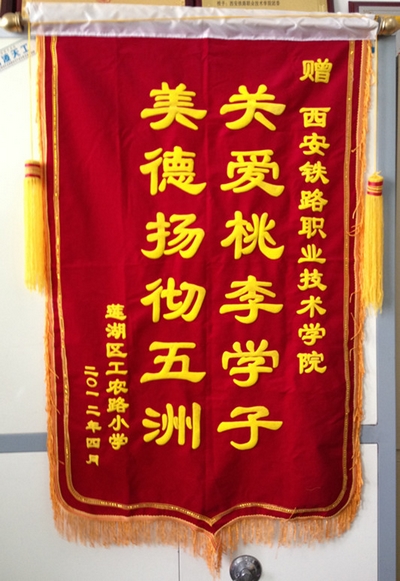 49,工农路小学为必赢官网送来了锦旗和感谢信,感谢学院为该校进城务工子女开展爱心募捐并结对帮扶。